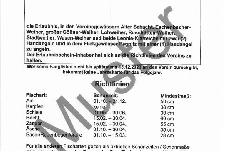 Die Ausgabe der aktuellen Jahreserlaubnisscheine mit Fanglisten für aktive Mitglieder und Jugendliche findet jeweils Sonntag von 9.00 bis 11.00 Uhr…