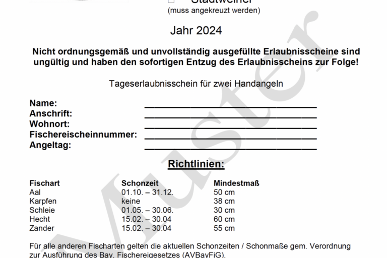 Für die Angelsaison 2024 gibt es keine Tageskarten mehr. Ab 01. April 2025 sind in unseren Verkaufsstellen wieder Tageskarten verfügbar.…