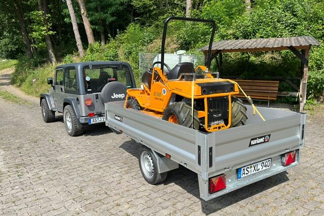 Neu im Fuhrpark ist dieser Hochlader-Anhänger, der eigens für den Transport unseres Allrad-Mulchers angeschafft wurde. So lässt sich der Mulcher…
