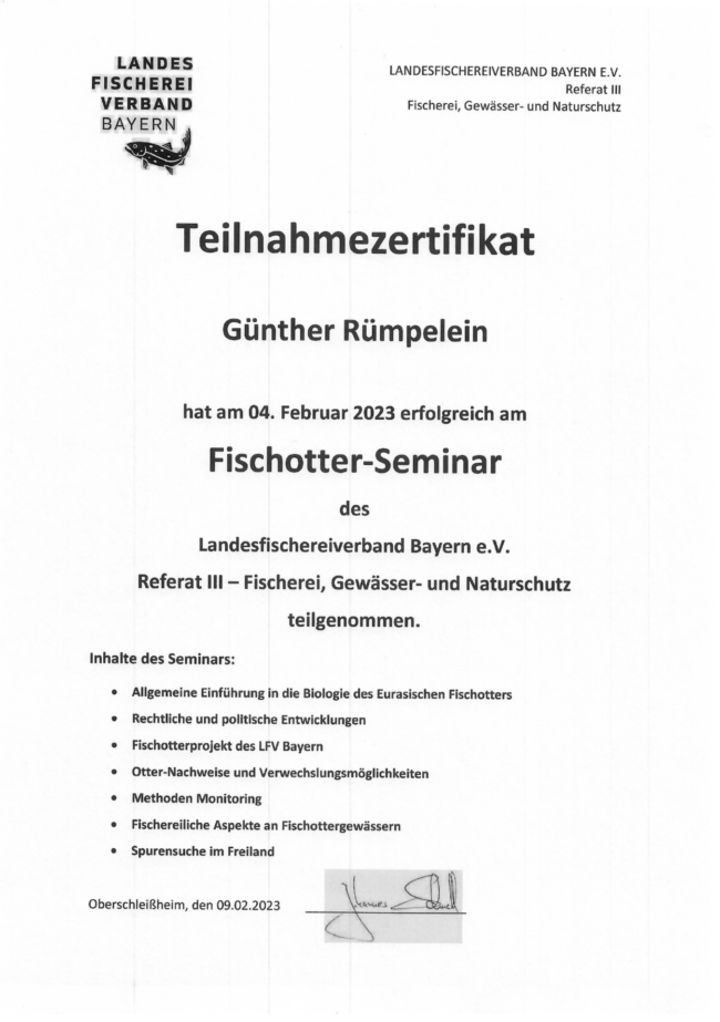 Am Samstag, den 16.09.2023 fand am Gössnerweiher ein Hegefischen statt. Ziel einer Hegemaßnahme ist es, den Zustand des Abwachsens, den Bestand der Fischarten und das allgem. Befinden der Fische zu kontrollieren. Als kleines Dankeschön für die Teilnahme, erhielt jeder Jugendliche ein Cap mit dem Vereinslogo, durch den 1. Vorsitzenden Günther Rümpelein.